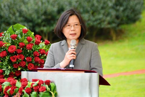 Tsai made the remarks during a ceremony commemorating the 28th anniversary of the death of democracy pioneer Deng Nan-jung (鄭南榕) at his tomb in New Taipei City’s Jinbaoshan Cemetery. Deng’s widow, former Presidential Office secretary-general Yeh Chu-lan (葉菊蘭), was at the event.