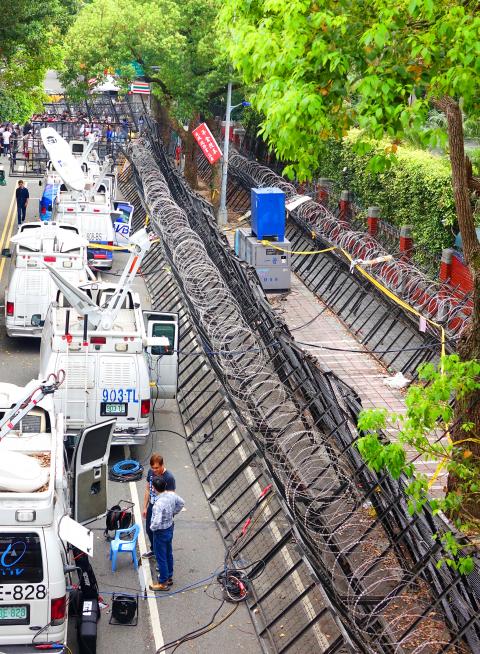 Lin said the legislature decided to keep the barricades after a meeting on Monday between Legislative Speaker Su Jia-chyuan (蘇嘉全) and Chinese Nationalist Party (KMT) caucus convener Sufin Siluko (廖國棟) and caucus secretary-general Alicia Wang (王育敏).