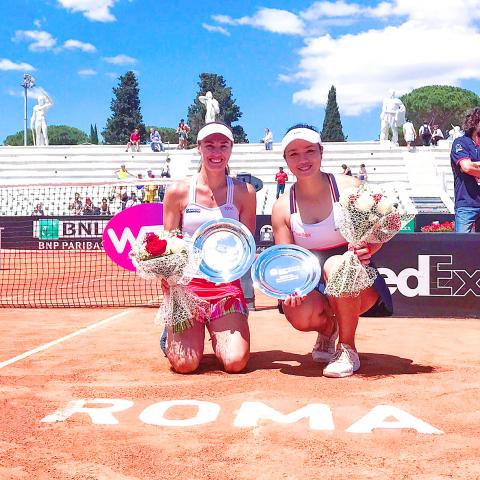 Taiwan’s Chan Yung-jan (詹詠然) and Martina Hingis lifted a second consecutive title and their third of the season at the Internazionali BNL d’Italia in Rome yesterday.