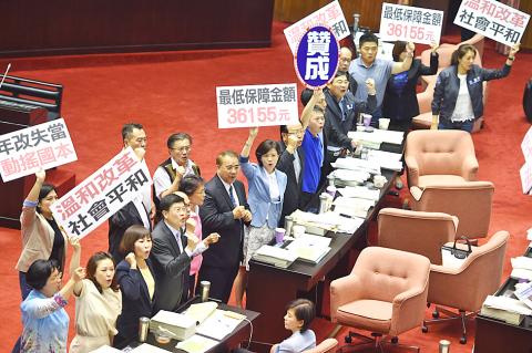 A proposal by the New Power Party (NPP) to set the minimum pension at NT$22,208, the median disposable income, was only backed by the NPP caucus’ five legislators.