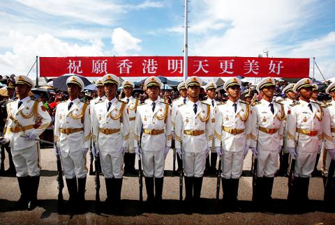 Chinese President Xi Jinping (習近平) on Saturday swore in Hong Kong’s new leader with a stark warning that Beijing would not tolerate any challenge to its authority in the divided territory, in his strongest speech yet amid concerns over what some perceive as increased meddling by Beijing.