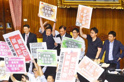 After a presentation on the Forward-looking Infrastructure Development Program by Premier Lin Chuan (林全) was yesterday once again blocked by Chinese Nationalist Party (KMT) legislators, Legislative Speaker Su Jia-chyuan (蘇嘉全) bypassed a legislative question-and-answer session to send the Executive Yuan’s budget proposals to a committee review.