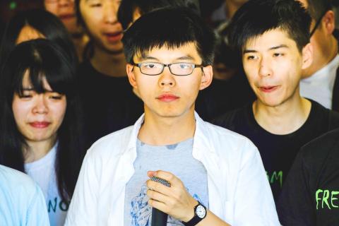 Joshua Wong (黃之鋒), 20, Alex Chow (周永康), 26, and Nathan Law (羅冠聰), 24, were sentenced last year to non-jail terms, including community service for unlawful assembly, but the Hong Kong Department of Justice applied for a review, seeking imprisonment.