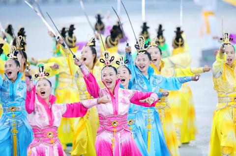 A dance titled “Celebration of Life” (生命禮讚) was performed to a song sang by Aboriginal singers, with dancers forming the shape of Taiwan in the center of the stadium.
