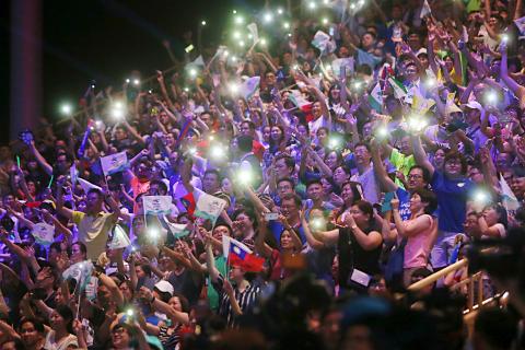 The nearly three-hour opening ceremony began at 7pm. Overture shows included traditional martial arts, a students’ marching band and performances by the honor guard, as well as singing and dancing to the Taipei Universiade’s theme song, Embrace the World (擁抱世界擁抱你) by the band I-Want Star Taiwan.