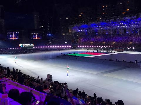 President Tsai Ing-wen (蔡英文), Taipei Mayor Ko Wen-je (柯文哲) and the audience gave a standing ovation to the athletes as they entered the stadium. Most of the athletes were smiling and taking photographs with their smartphones, and some gestured to the crowd inviting them to respond.