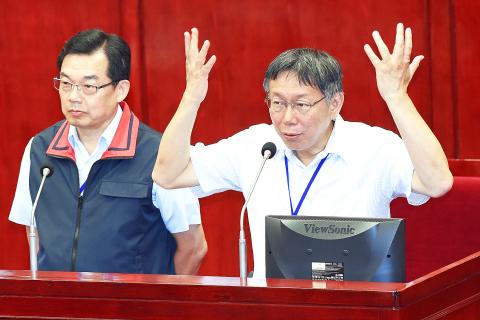 Ko made the remark in response to a hypothetical question by Chinese Nationalist Party (KMT) Taipei City Councilor Chin Huei-chu (秦慧珠) on the second day of question-and-answer sessions at the Taipei City Council.