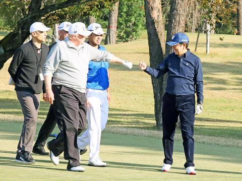 Abe told reporters after the golf session that the two could talk frankly in a relaxed atmosphere while out on the course, adding that they were able to “carry out in depth discussion, at times touching on various difficult issues.”