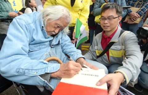 Hundreds of people yesterday joined an early celebration in Taipei for Taiwanese independence pioneer Su Beng’s (史明) 100th birthday, while Su urged President Tsai Ing-wen (蔡英文) to ensure that Taiwanese could become the master of their own nation.
