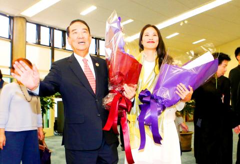 His delegation flew home yesterday and was greeted at Taiwan Taoyuan International Airport by Minister of Foreign Affairs David Lee (李大維) and Presidential Office Secretary-General Joseph Wu (吳釗燮).