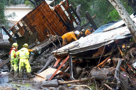 The mudslides were unleashed in the dead of night by flash flooding in the steep, fire-scarred Santa Ynez Mountains.