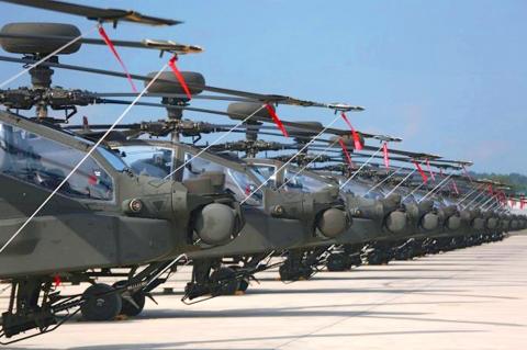 Taiwan in 2008 ordered 30 Boeing AH-64E Apache helicopters from the US for about NT$59.3 billion (US$2.01 billion at the current exchange rate), including personnel training and logistics, and took delivery of the aircraft from November 2013 to October 2014.
