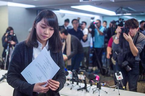 She had been hoping to stand in by-elections in March, which were triggered by the disqualification from the Hong Kong Legislative Council of six lawmakers who protested while taking their oaths of office in 2016.
