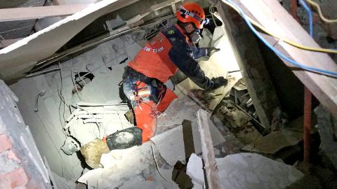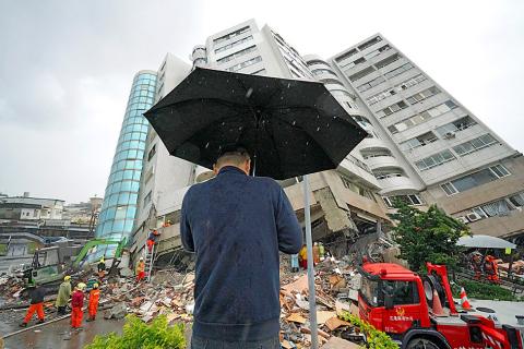 The building at 3pm visibly moved 4cm within 10 minutes, causing Hualien County’s forward command base to suspend all search-and-rescue efforts until 5pm, the county said.