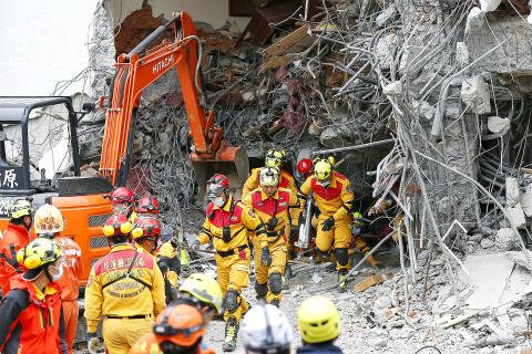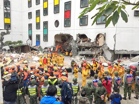 About 423 search-and-rescue personnel, along with 20 search-and-rescue dogs from more than 17 counties and cities were involved in the rescue operations at the two buildings, Hualien County said.