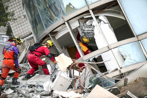 Yun Men Tsui Ti, like all other residential buildings in its proximity, sits on the Milun fault, but was the only one that collapsed during the earthquake, which raised questions over its construction quality, National Taiwan University geology professor Chen Wen-shan (陳文山) said.