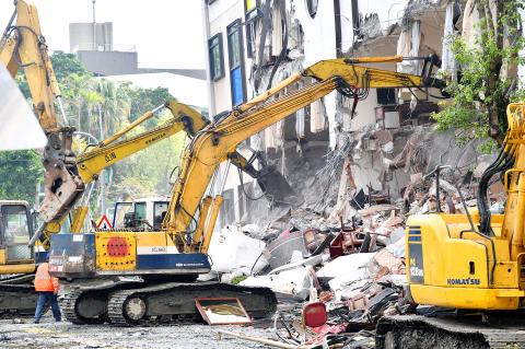 The building collapsed in a roughly north-to-south direction, but it was the steel bars facing the north that were broken and exposed, indicating that that the building’s construction was likely flawed, New Taipei City Professional Civil Engineers Association chairman James Yu (余烈) said.