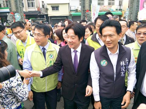 Lai was accompanied by Huang, Chen, Yeh and Yen on his visits to the Kaitai Tianhou Temple (開台天后宮) in Anping District (安平), one of the nation’s oldest temples, and the Kuanyin Temple (觀音亭).