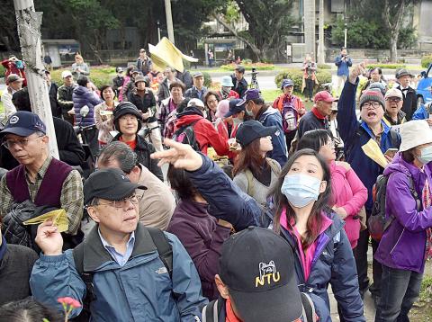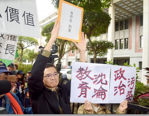 “We are strongly opposed to the political interference that has obstructed the legal NTU presidential election process and prevented Kuan from taking office,” NTU School of Veterinary Medicine professor Chou Chung-hsi (周崇熙) said.