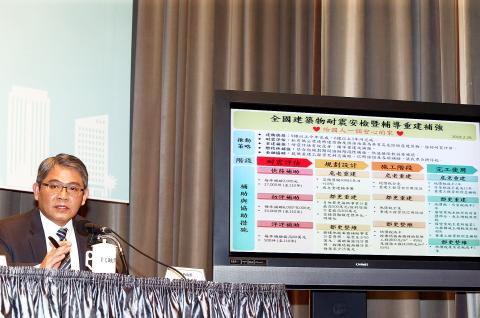 The Cabinet also plans to revise the Building Act (建築法) to allow the government to order the compulsory reconstruction or reinforcement of dangerous buildings, Yeh said.