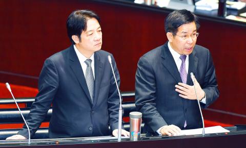 Pan made the remarks at a question-and-answer session at the legislature in Taipei, when he was asked by Democratic Progressive Party Legislator Yu Mei-nu (尤美女) what his thoughts were on two entries: “aircraft carrier” (航空母艦) and “washboard” (洗衣板).
