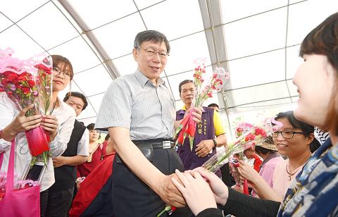 Ko told reporters on the sidelines of a Mother’s Day event in Taipei yesterday that it is difficult to maintain balance and keep going in a society as politically polarized as Taiwan’s.