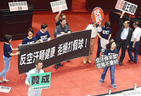 Legislators yesterday passed the third reading of draft amendments to Article 12 of the Air Pollution Control Act (空氣污染防制法), now all that is needed for the Environmental Protection Administration (EPA) to consult with — rather than decide with — the Ministry of Economic Affairs on regulations related to controlling the total volume of air pollution.