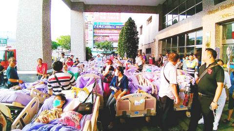 Deputy Minister of Health and Welfare Hsueh Jui-yuan (薛瑞元) said the ministry’s preliminary understanding was that a nurse and a caregiver were able to push three of the beds out of room 7A23, but the room was filled with smoke by the time they tried to push the fourth bed out and the bed became stuck in the door.