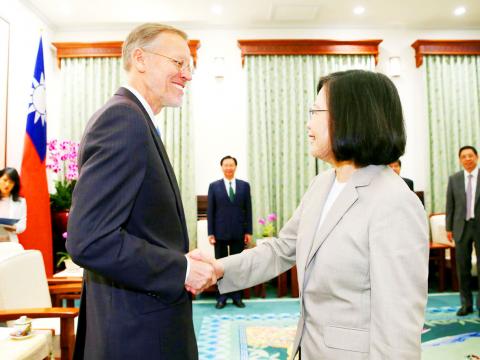 Christensen made the remarks in his first meeting with President Tsai Ing-wen (蔡英文) at the Presidential Office Building in Taipei since assuming the helm of the institute’s Taipei office on Aug. 11.