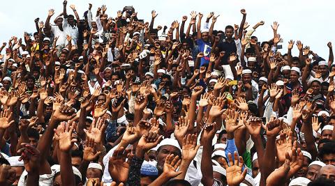 At a mass prayer rally, one speaker repeatedly shouted: “Who are we?” to which the crowd responded in chorus: “Rohingya, Rohingya.”