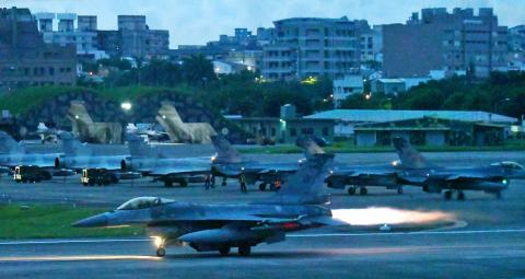 Additionally, four Indigenous Defense Fighters simulated an emergency landing from Taichung’s Ching Chuan Kang (清泉崗) Air Base to Hualien Air Base, sources said.