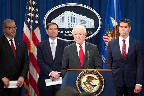 The US Department of Justice unveiled criminal charges against Chinese state-owned Fujian Jinhua Integrated Circuit Co (晉華集成電路) and Taiwan’s United Microelectronics Corp (UMC, 聯電), along with three UMC officials.