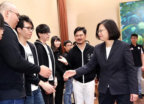 Tsai made the remarks at the Presidential Office Building in Taipei when meeting with HITCON and BFS — Taiwanese teams that placed third and 12th respectively at computer security convention DEF CON’s Capture the Flag competition last month.