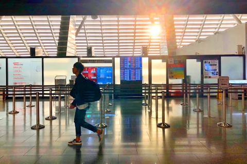 An Emirates flight from Dubai arrived at Taiwan Taoyuan International Airport yesterday afternoon, the first service of the airline since the US and Israel launched strikes against Iran on Saturday. Flight EK366 took off from the United Arab Emirates (UAE) at 3:51am yesterday and landed at 4:02pm before taxiing to the airport’s D6 gate at Terminal 2 at 4:08pm, data from the airport and FlightAware, a global flight tracking site, showed. Of the 501 passengers on the flight, 275 were Taiwanese, including 96 group tour travelers, the data showed. Tourism Administration Deputy Director-General Huang He-ting (黃荷婷) greeted Taiwanese passengers at the airport and