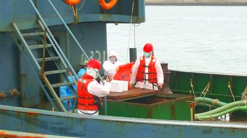 The pork was transferred to Council of Agriculture (COA) officials for disposal, and the coast guard took the six crew members to Magong City (馬公) for further questioning to determine whether they contravened the Act Governing Relations Between the People of the Taiwan Area and the Mainland Area (臺灣地區與大陸地區人民關係條例), Chan added.