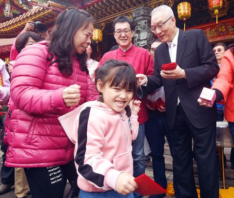 Politicians yesterday visited temples around the nation on the first day of the Lunar New Year, praying for prosperity and well-being while handing out “lucky” red envelopes to temple-goers.