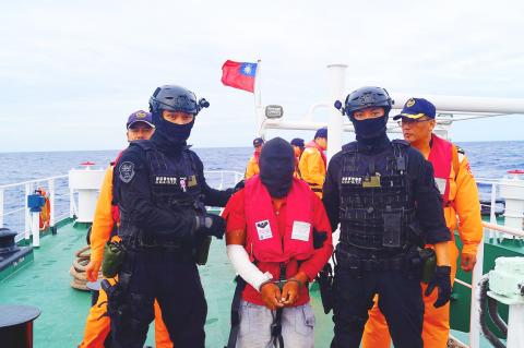 Coast guard patrol boat Hsun Hu No. 8, which departed from Kaohsiung on Feb. 21, yesterday met with Chao Feng No. 277 and Hung Fu No. 88 at 6:20pm and took over the suspect, the coast guard said.