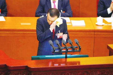 The Chinese government would make “further efforts to ensure the political loyalty of the armed forces,” Chinese Premier Li Keqiang (李克強) said in a speech to the nearly 3,000 members of the legislature, stressing the “absolute party leadership” over the military.