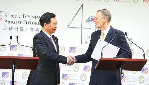 The creation of the Indo-Pacific Democratic Governance Consultations was announced by Minister of Foreign Affairs Joseph Wu (吳釗燮) and American Institute in Taiwan (AIT) Director Brent Christensen in a rare joint appearance at a news conference at the ministry in Taipei.