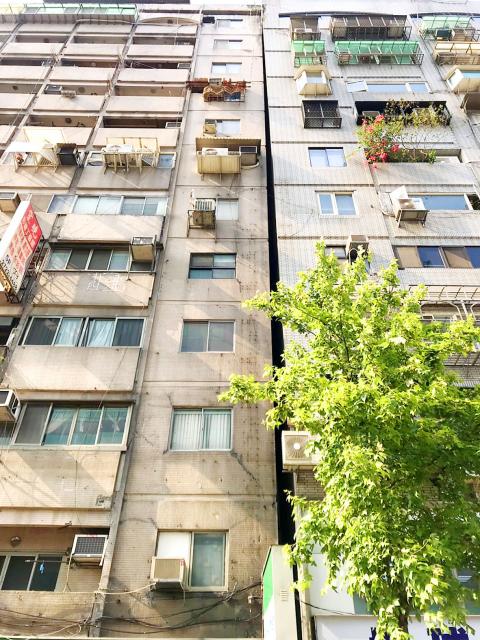 A building on Taipei’s Changan E Road shifted during the quake, leading to the evacuation of more than 30 people to a nearby park.