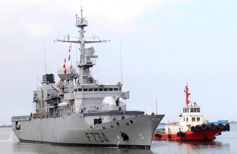 Asked by reporters to comment on the passage of the French warship, President Tsai Ing-wen (蔡英文) said that the Taiwan Strait is in international waters and that all kinds of vessels pass through it regularly.