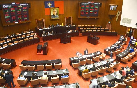 It is to be reviewed alongside the Executive Yuan’s “enforcement act of Judicial Yuan Interpretation No. 748” and another sponsored by Chinese Nationalist Party (KMT) Legislator Lai Shyh-bao (賴士葆) on behalf of the conservative Happiness of the Next Generation Alliance, both of which proceeded to a second reading in March.