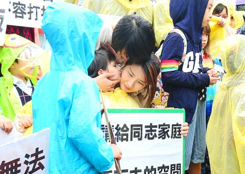 “The Executive Yuan’s version has made some compromises, but it would still help protect families such as mine by allowing people to adopt the biological child of their same-sex spouse,” said Jay Lin (林志杰), who is raising twin sons with his partner.