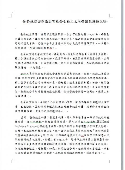 Although the union is on Monday next week scheduled to begin voting on whether to launch a strike, it would still prefer to resolve labor disputes through negotiations, she said, urging EVA to “stop any irrational behavior” and re-enter talks.