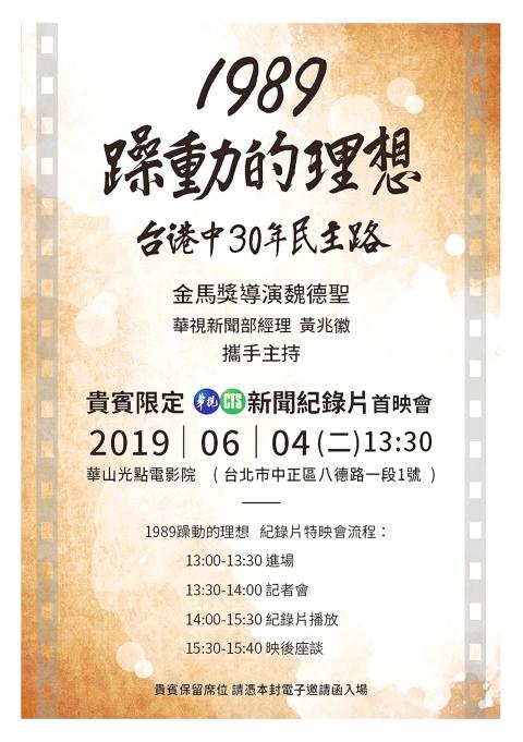 The documentary features footage of the Tiananmen Square Massacre in 1989, Taiwan’s Wild Lily Movement in 1990, the 2014 Sunflower movement and the “Umbrella movement” in Hong Kong in 2014.