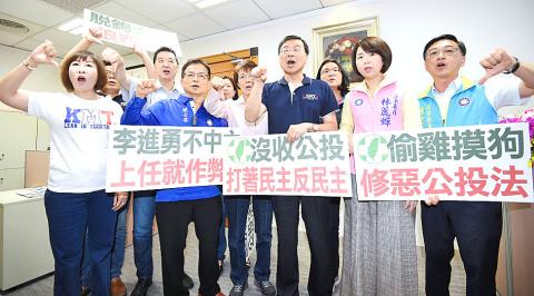 In related news, several Chinese Nationalist Party (KMT) lawmakers visited the commission’s offices in Taipei yesterday to see Lee — who had already left — and protest proposed amendments to the Referendum Act (公民投票法).