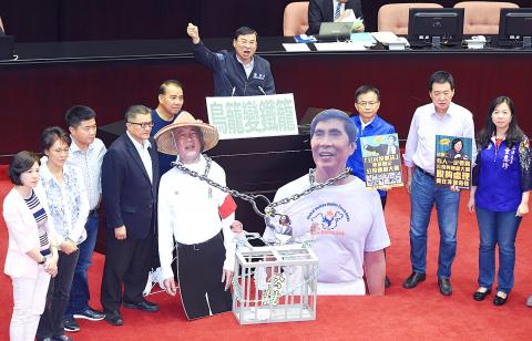 The amendment was passed after lawmakers earlier in the day approved a proposal by Democratic Progressive Party (DPP) caucus whip Ker Chien-ming (柯建銘) and 66 others to hold a provisional session from yesterday through July 5 to review proposed amendments and laws.