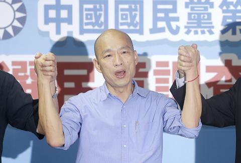 The Chinese Nationalist Party (KMT) is to nominate Kaohsiung Mayor Han Kuo-yu (韓國瑜) as its candidate for next year’s presidential election after he beat Hon Hai Precision Industry Co (鴻海精密) founder Terry Gou (郭台銘) by 17 percentage points in the primary.