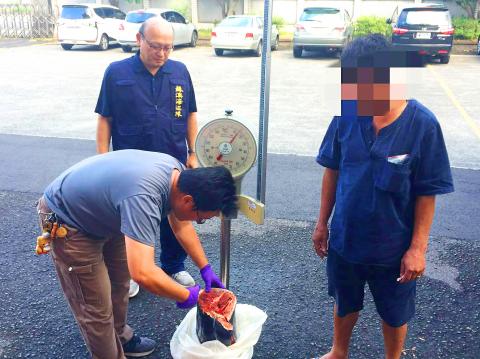 On Wednesday afternoon, the Yilan County Government informed the OCA that Coast Guard Administration officials in Suao had stopped a driver surnamed Lin (林), who was delivering 449.5kg of meat seemingly cut from cetaceans, it said.