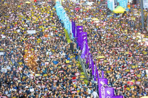 The organizer, the Civil Human Rights Front said that the rallies, which have drawn hundreds of thousands of people, were held to show support for demands including the withdrawal of legislation that would allow extraditions to China, amnesty for arrested protesters and the resignation of Hong Kong Chief Executive Carrie Lam (林鄭月娥), who is backed by Beijing.